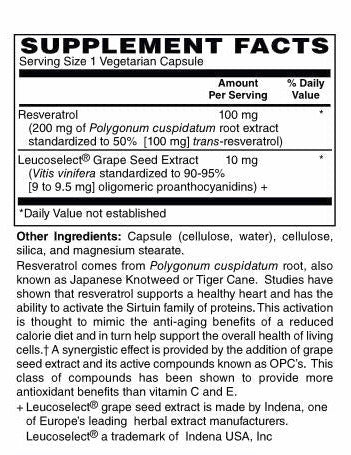Features standardized polygonum cuspidatum root extract along with Leucoselect® standardized grape seed extract from a world leader in botanical extracts.