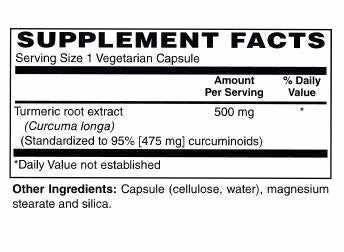 Providing 500mg turmeric per capsule standardized to 95% curcuminoids.